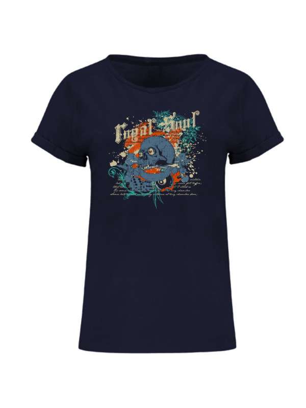 Dámské tričko volnějšího střihu s krátkým rukávem. Kulatý výstřich ze stejné látky, zpevněné skryté švy. Ukončení rukávů s ohrnutím s přišitím ve 4 bodech. Boční švy.